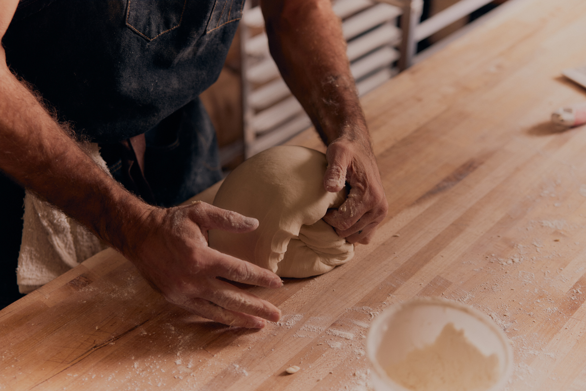 The Nick + Sons story finds its beginnings in Iceland when photographer Nicholas Heavican found himself taken aback by a piece of bread at Braud & Co. With zero baking experience, Nick H. was intrigued to learn the secrets of the loaf and landed an apprenticeship that would change his life forever. He learned not only how to bake bread, but how the bakery culture brought the community together in a profound and interconnected way. Upon returning home to Williamsburg, Nick H. looked around + said, “My neighborhood needs this.” In true NY-side-hustle form, Nick H. worked by day + rented pizza kitchens by night to bake bread to bring to the community.